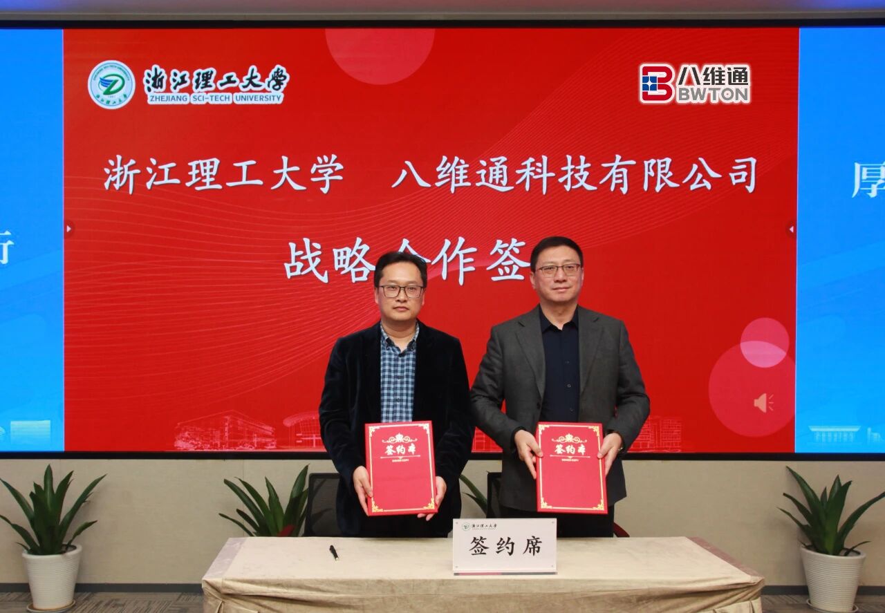 2025年11月11日,八維通科技有限公司(以下簡(jiǎn)稱 “八維通”)董事長(zhǎng)楊宏旭率隊(duì)訪問(wèn)浙江理工大學(xué)(以下簡(jiǎn)稱 “浙理工”),并出席戰(zhàn)略合作簽約儀式。期間,董事長(zhǎng)楊宏旭與浙理工黨委書記趙全軍舉行會(huì)談,趙書記對(duì)八維通的到訪表示歡迎,并對(duì)本次合作給予高度評(píng)價(jià)。隨后,楊宏旭董事長(zhǎng)與校黨委副書記繆魯加代表雙方簽署協(xié)議,共同開啟校企協(xié)同、產(chǎn)教融合的新篇章。